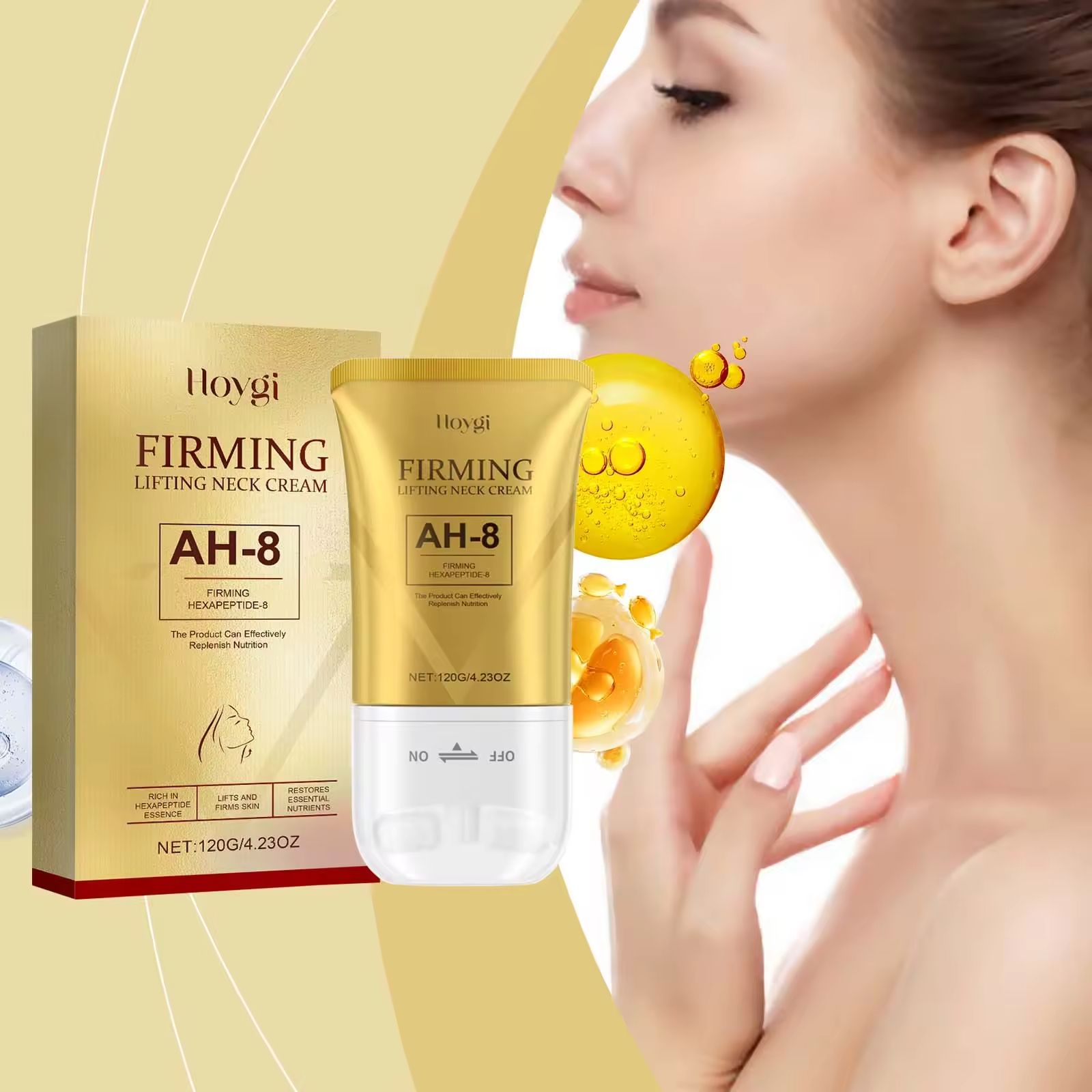 • Firmagem e Elevação: Direcionado à flacidez da pele do pescoço e às rugas de pescoço, através da ação ativa do hexapeptídeo, remodela o contorno da pele do pescoço, tornando as linhas do pescoço mais jovens.